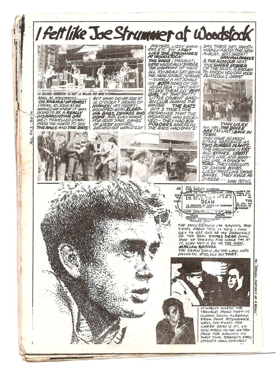 I’ve scanned in one page from Issue 3,  a brief review of the Thin Lizzy gig in Dalymount Park, Dublin in August 1977. The interest here was that the Rats & more importantly the Radiators were supporting. Funny to see the pics of Phibsboro Shopping Centre looking as awful then as it does now & to read the anti ‘hippie’ sentiment (which was the punk de rigeur at the time)of the piece.