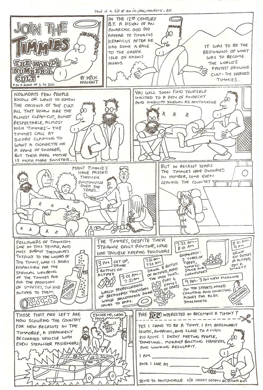 cool comic- I remember besides Gik himself, Sid the sod from C.I.E. which was a stream of consciousness meditation of one day in the life of a dublin bus conductor – which was inspired reading. And the page on ‘How to play golf after a nuclear war’ was grim reading for any ambitious golfer without their own nuclear bunker.