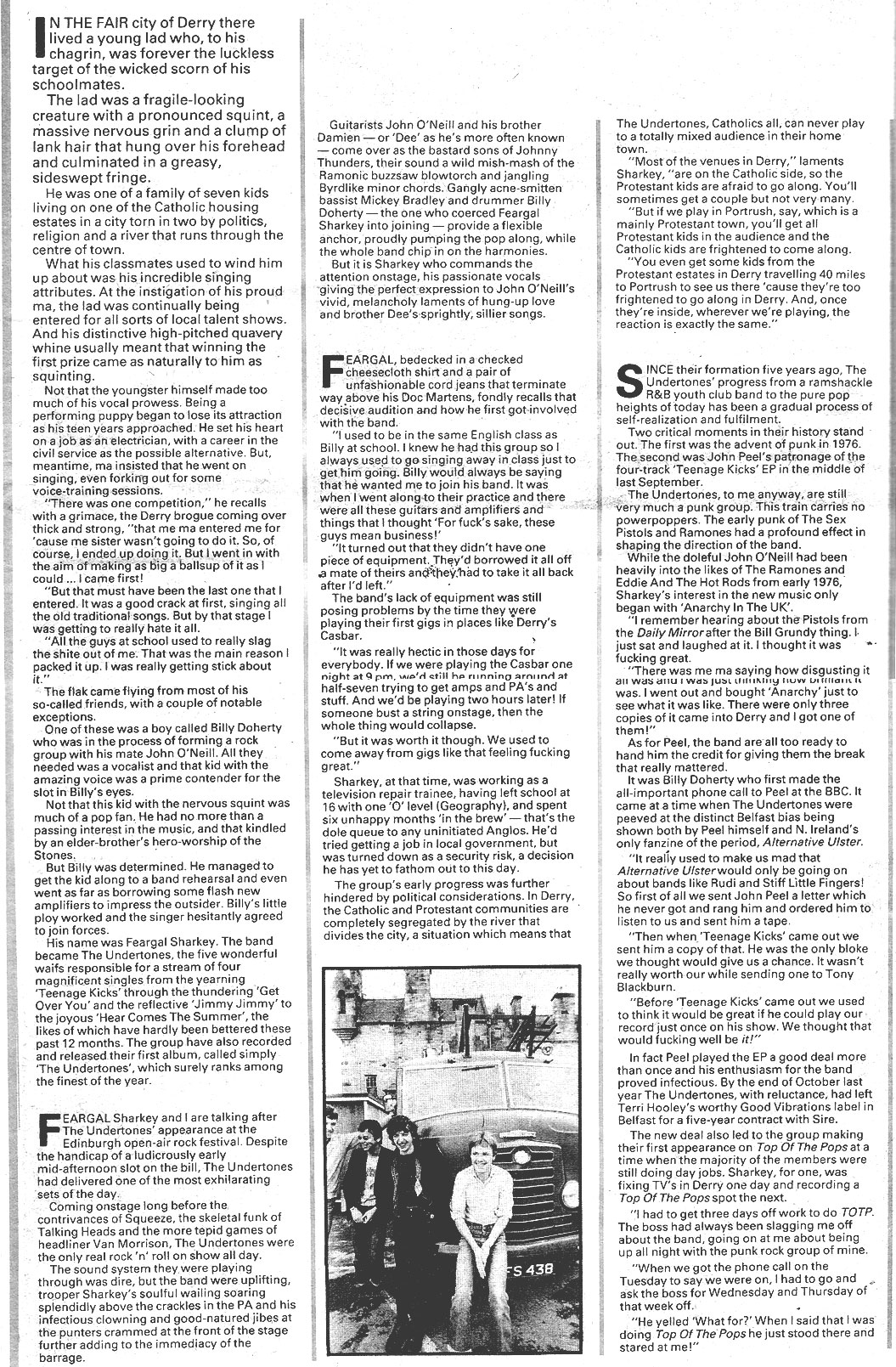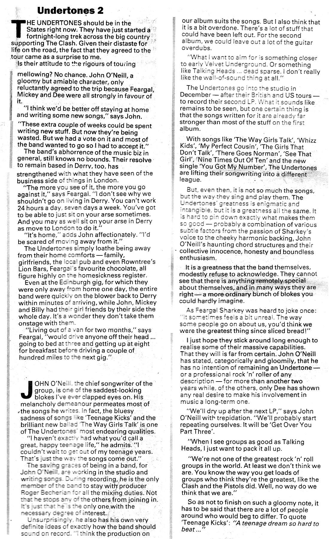 Between my brother and myself, we bought and read every issue of the NME from 1974 to 1980. Unfortunately, we didn’t keep many of them. One I still have is this particularly good issue, from 32 years ago this week, which features great pix (P Smith) & interview (A Thrills) with cover stars The Undertones.