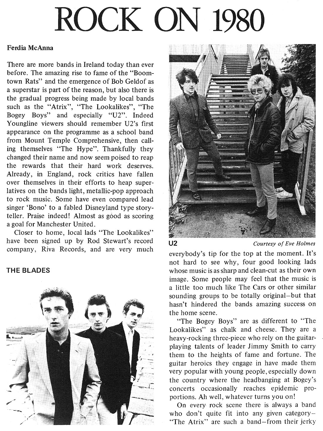 The second of the Youngline annuals and its no better than the 1980 version. Note the name change from Annual to Yearbook and the re-branding of the logo. The rock article,written by Ferdia McAnna, does reference lots of new bands. Anyone remember Katmandu? I think they may have also appeared on Youngline during 1980/81 and were in the same TV competition which Choice went on to win. (see earlier post about Choice – and the quest to find a copy of that TV recording).