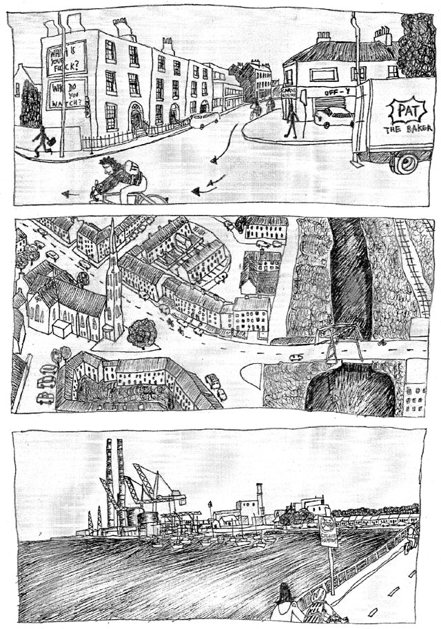 The most recent issue, #22, has 60 advert free pages and features a comic story called the “Punk Connection” which has lots of cool drawings of cyclists in Dublin City. I’ve scanned in 3 of these pages below.