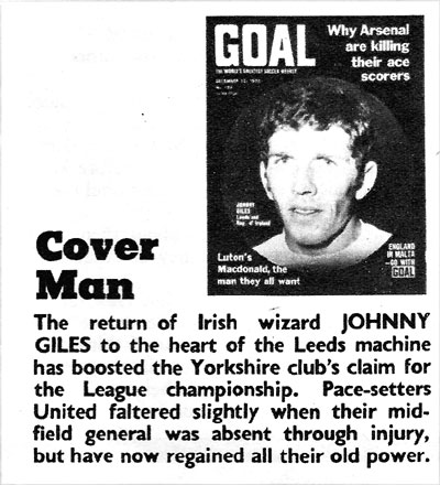 For the week that’s in it and seeing that we’ve already featured Eamonn Dunphy and will shortly have a post on Liam Brady , I’ve scanned in some more on Giles from 1972 at the bottom of this post. But first, here are a few other page scans from Goal Magazine…