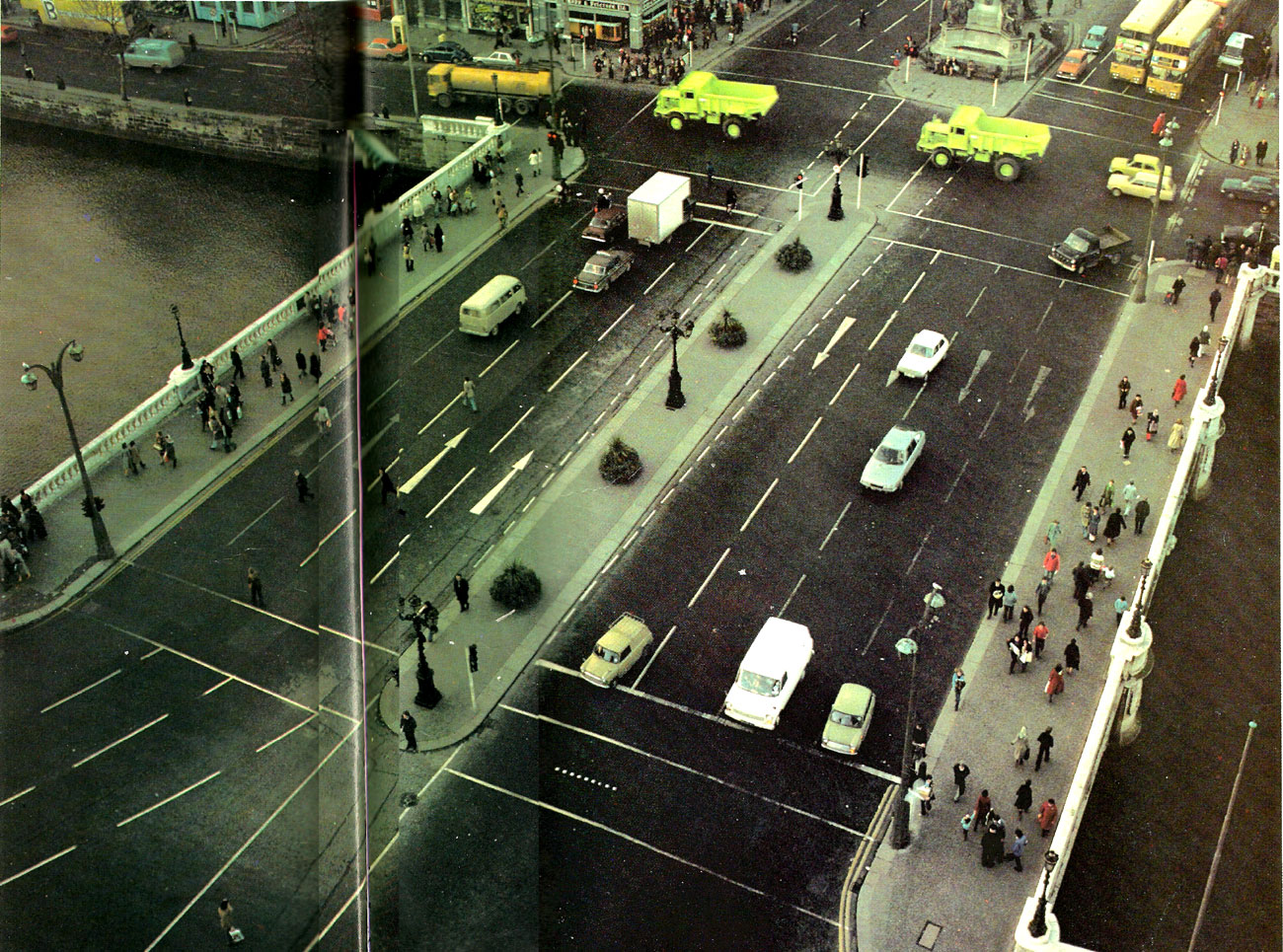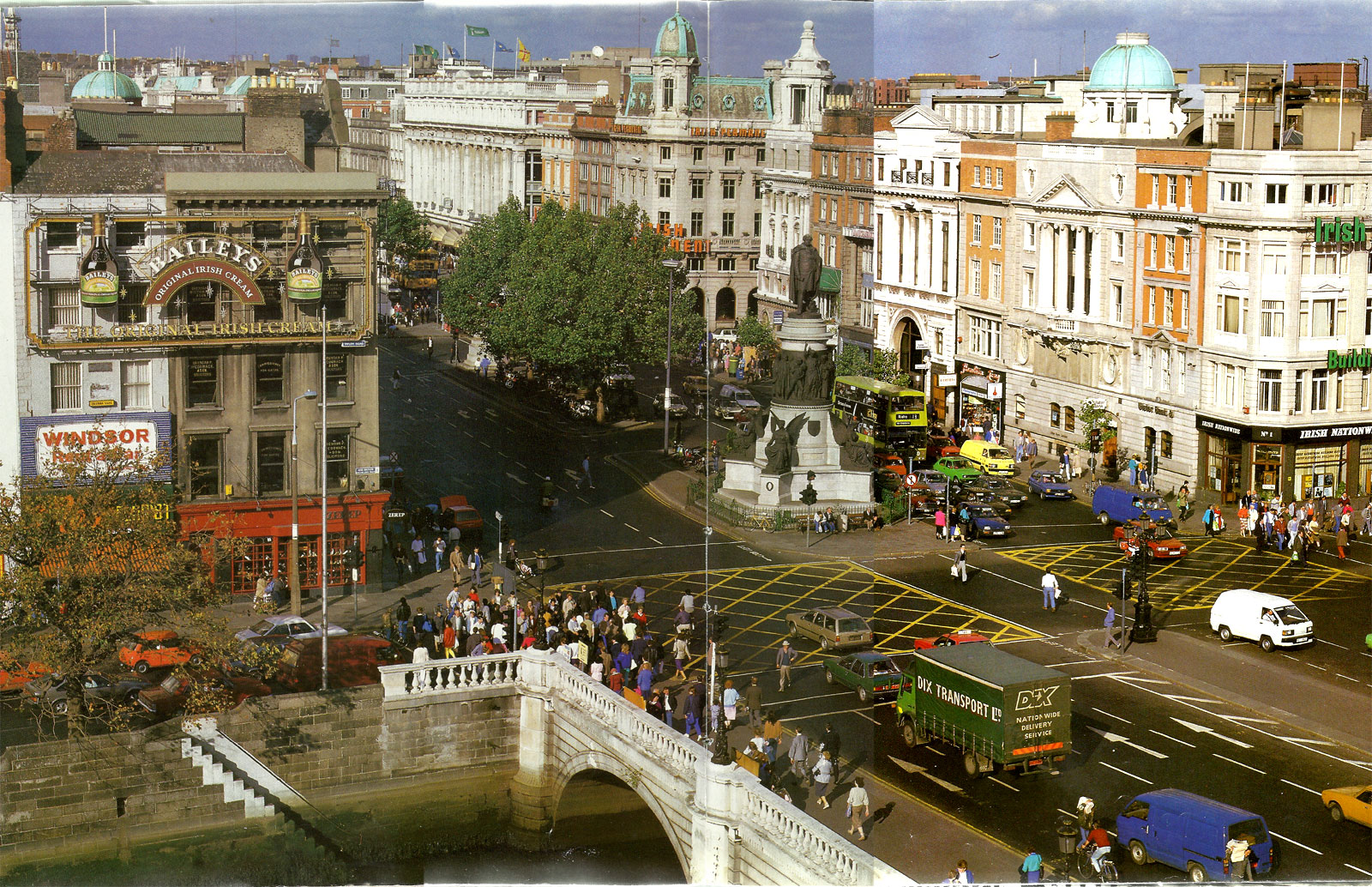 I did a quick internet search and was surprised that none of these photos of O’Connell Bridge, Dublin appear to be on the web. Well, that’s changed now. The above black & white picture, by Brian Seed for Life Magazine, is beautiful. Click on the other scanned panoramic shots to view at larger scale.