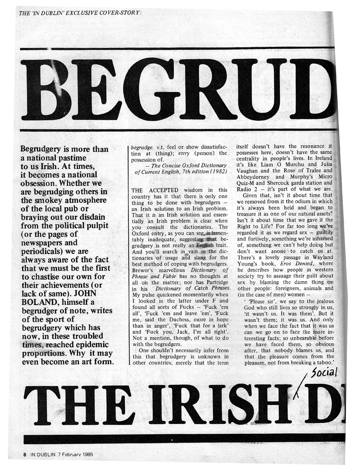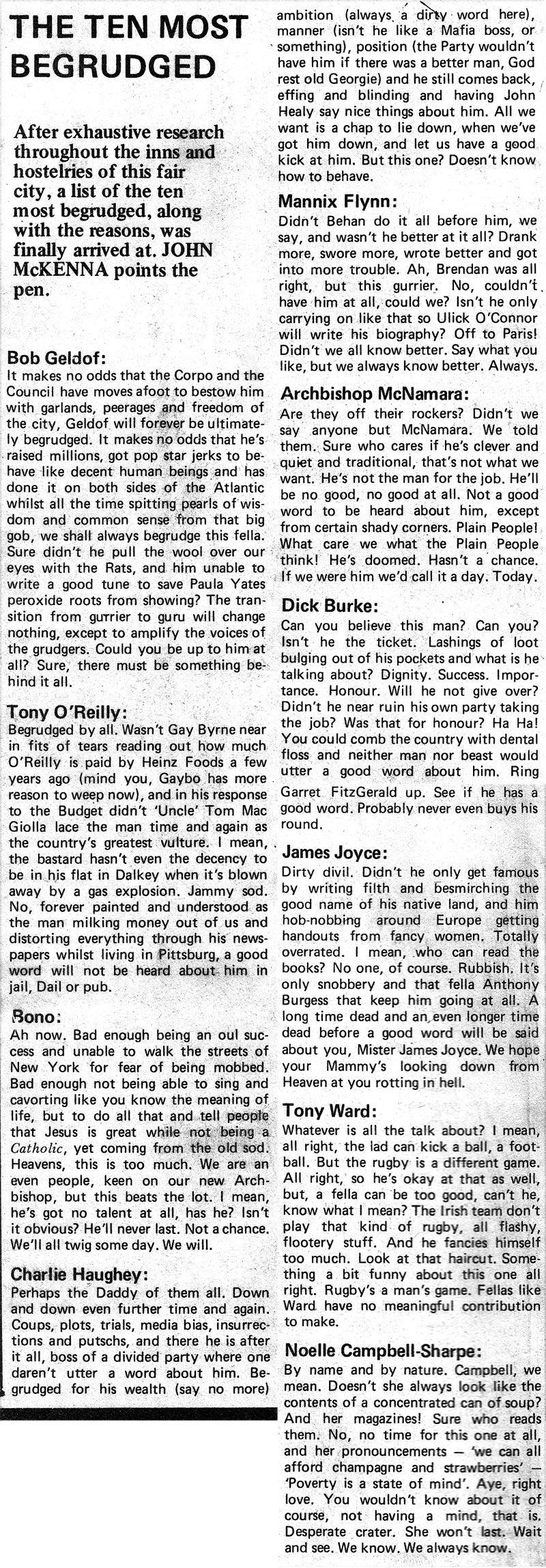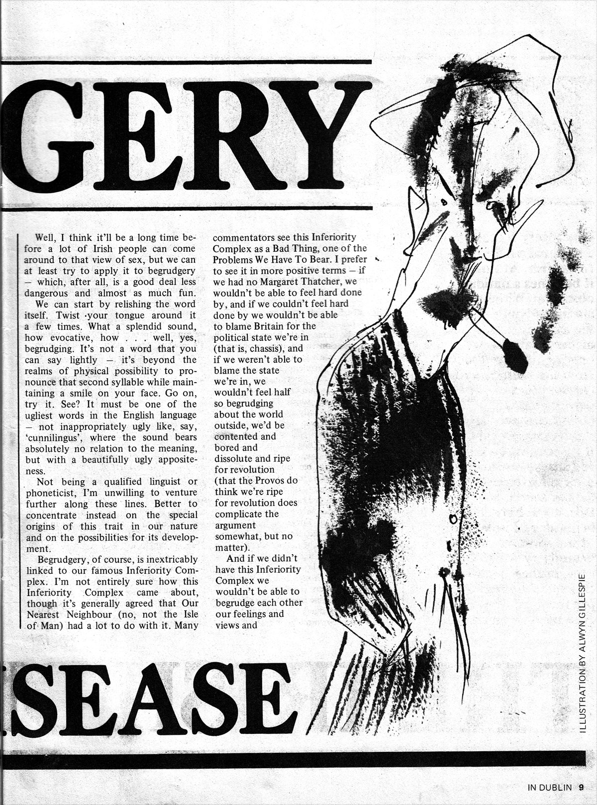 From In Dublin Magazine, Feb 1985. Cover illustration by Jim Cogan.