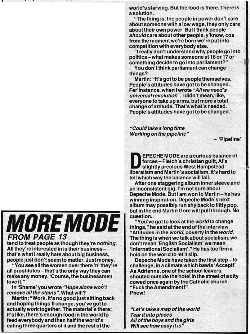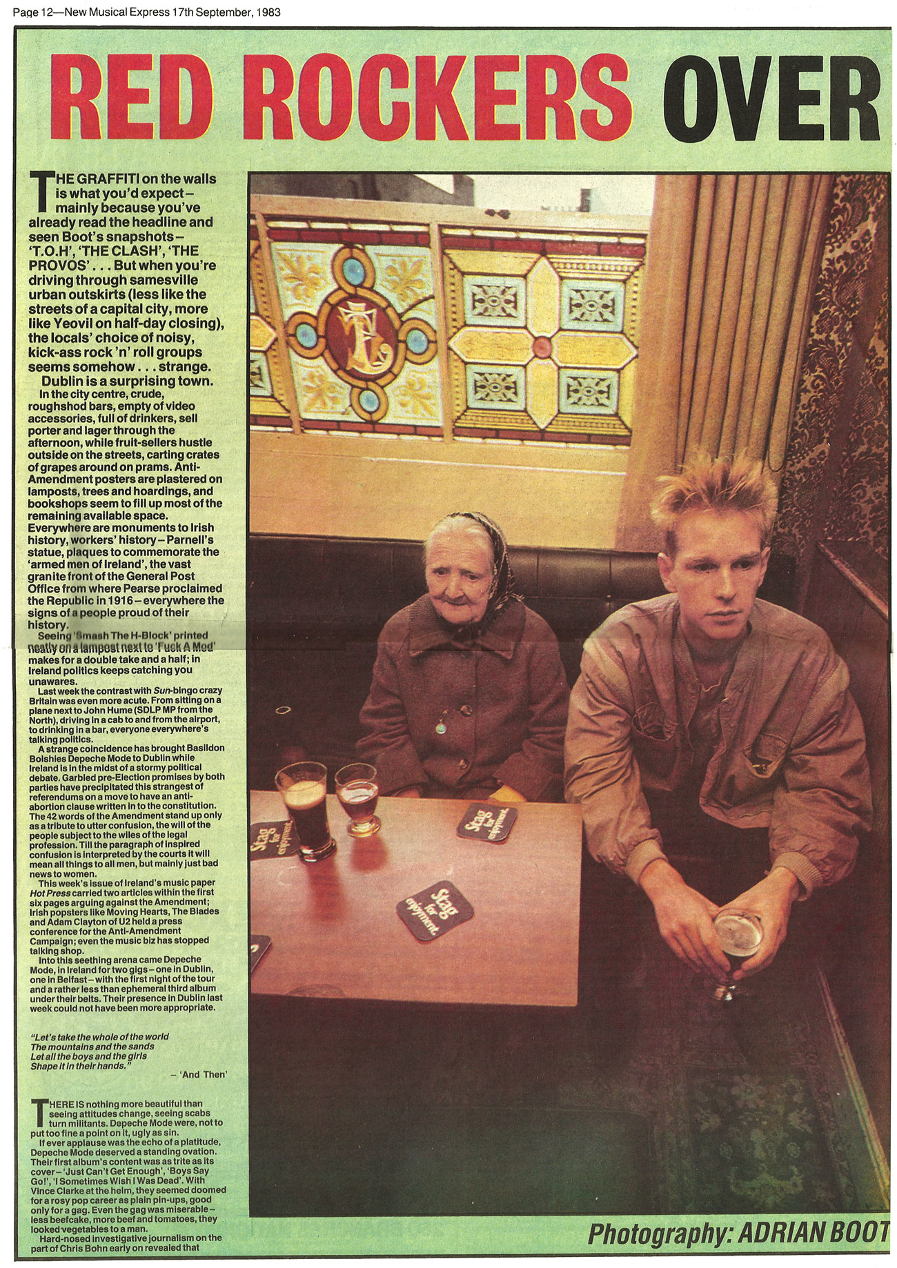 From 30 years ago, this is Depeche Mode in Dublin at the time of the Eight Amendment to the Irish Constitution Referendum. Read more about this in the interview by X Moore scanned below from NME, September, 1983. Photos by Adrian Boot.