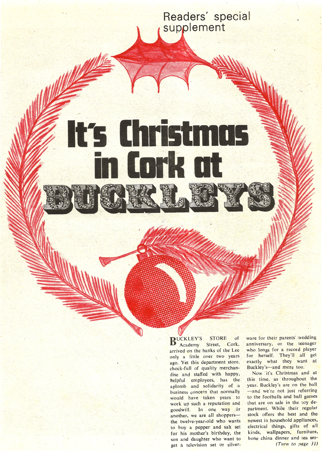 We’ve scanned a selection of gift ideas and adverts from this 44 page Christmas supplement for Buckleys of Academy St, Cork. The supplement came with Woman’s Way from December 1969.