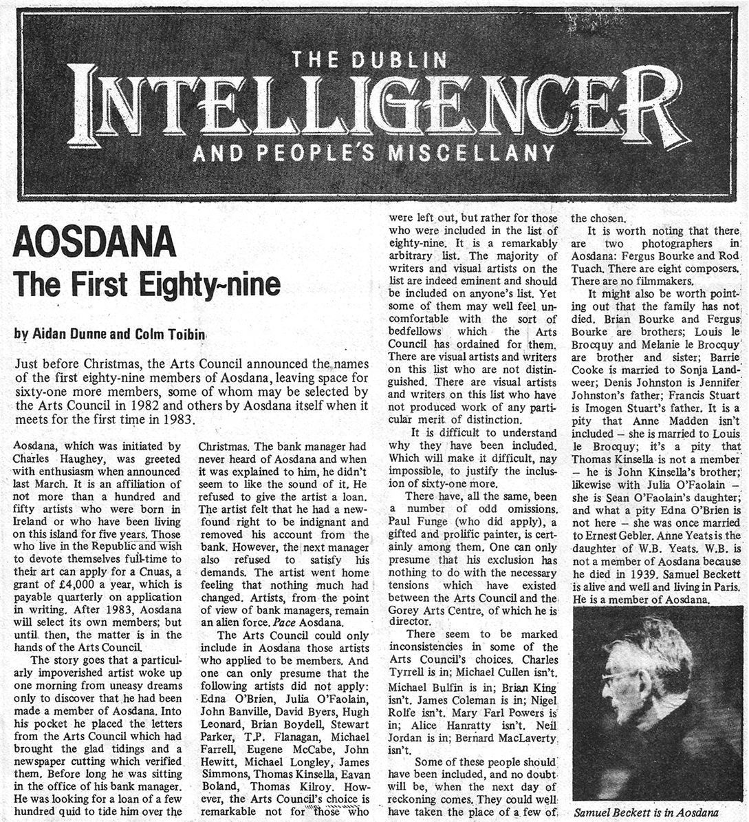 What a difference 30 years makes…Margaretta D’Arcy’s name can be seen as being honoured as a founding member of Aosdana…now the same state has taken her liberty away at the age of 79 for protesting at Shannon Airport against the state’s unwillingness to apply its own laws…