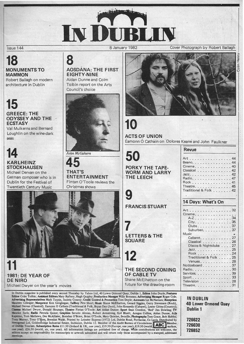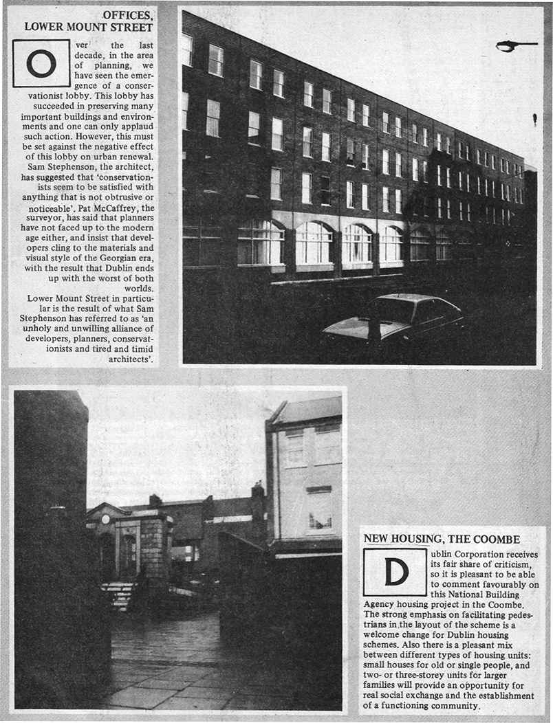 The site featured in colour on the cover is Peter Place, off Charlemont St. Used to go through it on the way to and from work/pub all the time back then. The Béal Bocht was on the corner – demolished years ago. The whole area has been almost completely redeveloped since, of course, in a way that nobody would have dreamed possible back in 1982, and the three derelict houses in the photo are long gone. Unfortunately, the three horrible office blocks fronting onto Harcourt Road are still there, although the one on the left has been given a makeover. There was a huge derelict site fronting onto the canal for years, which is where the cover picture has been taken from. It was a real eyesore. It’s now where the Hilton Hotel is.