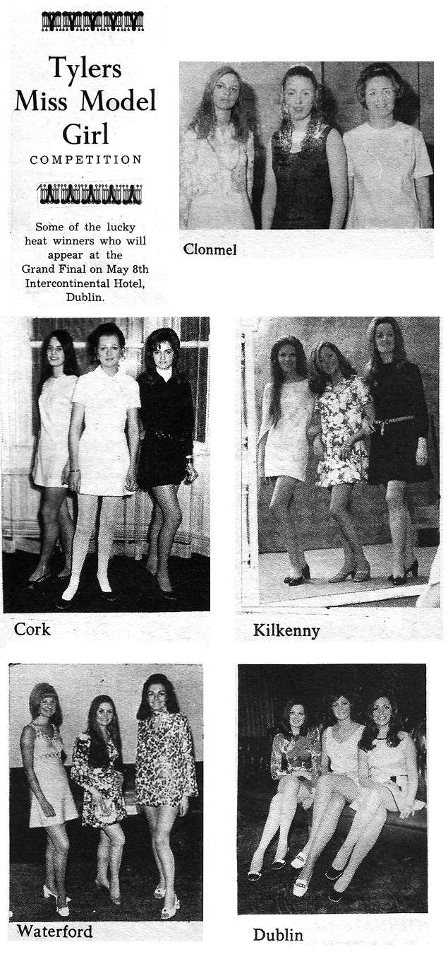 Some of the heat winners through to the final of the Tyler’s Shoes Miss Model Girl Competition held in Dublin, May, 1970. Scanned by Brand New Retro from New Spotlight Magazine, May, 1970.